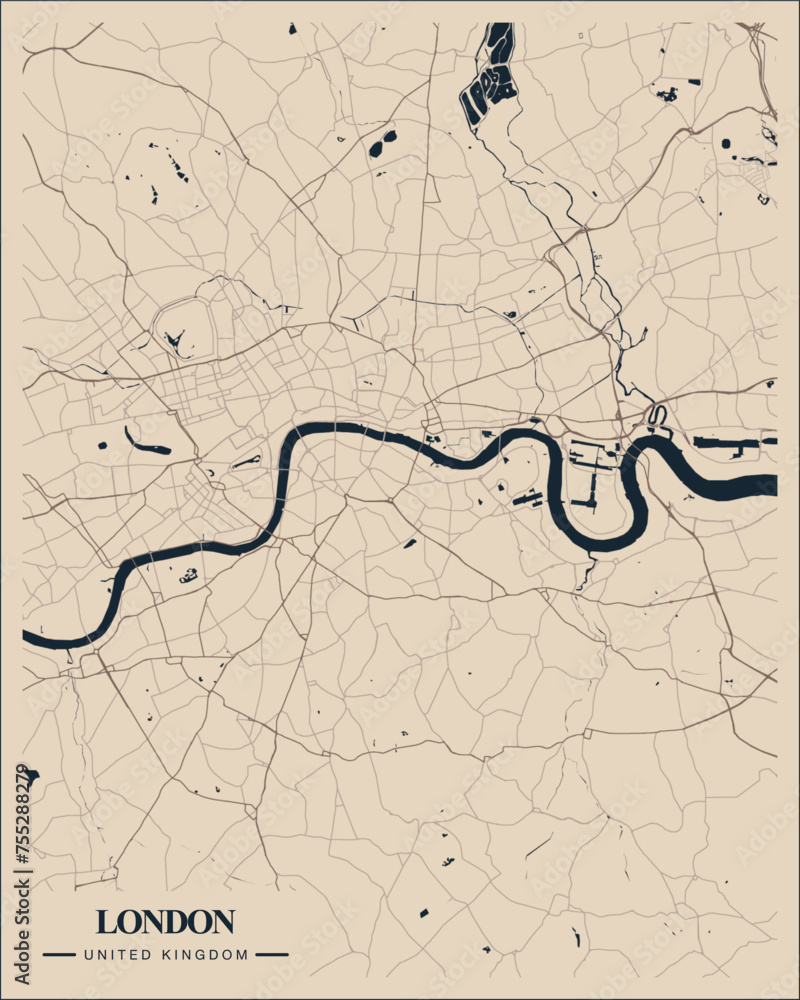 Fototapeta London vintage map with highways and streets