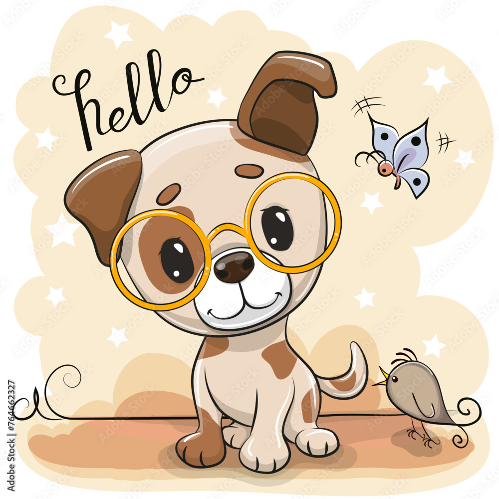 Fototapeta Cartoon Dog in glasses and bird