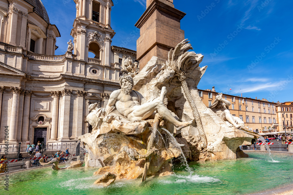 Fototapeta Fountain of Four Rivers (Fontana dei Quattro Fiumi) on Navona square, Rome, Ital