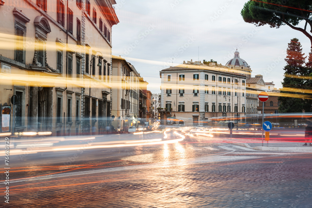 Fototapeta light of car traffic on Piazza d'Aracoeli