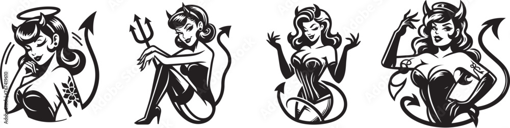 Fototapeta devil girl pin-up in black and white
