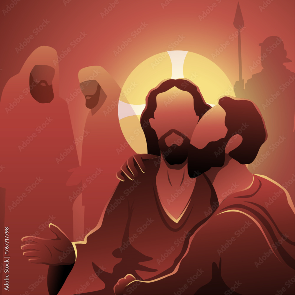 Fototapeta Jesus kissed by Judas in the Garden of Gethsemane