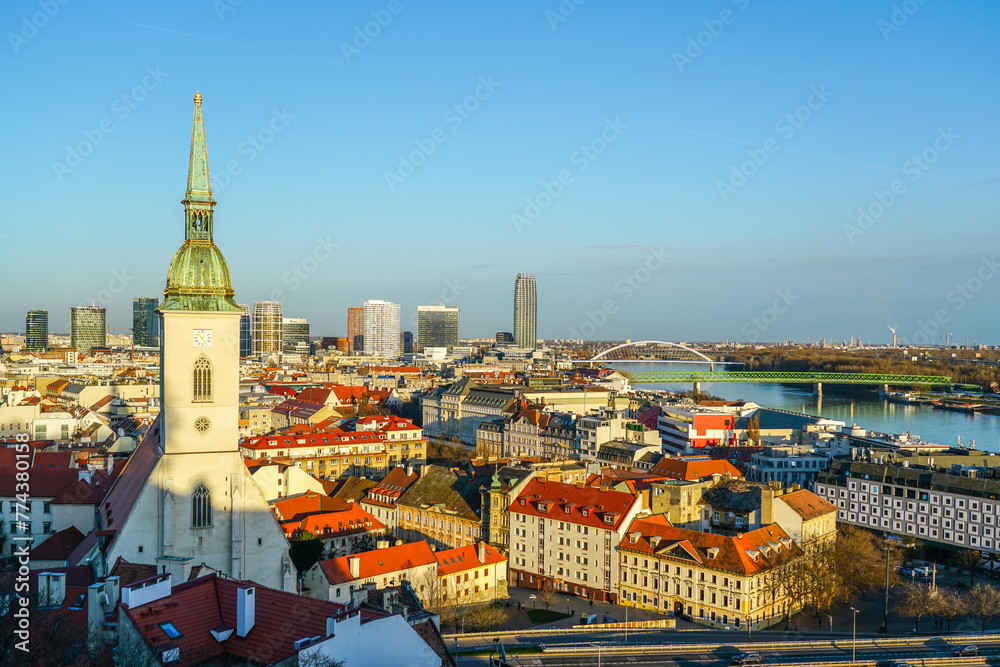 Fototapeta Bratislava panorama on a sunny day, the skyline of Bratislava as seen from Brati