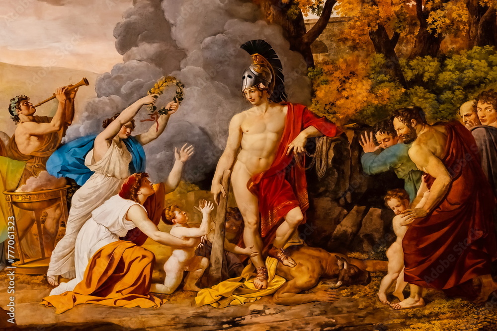 Fototapeta Particolare del dipinto che raffigura Teseo che batte il minotauro presente negl
