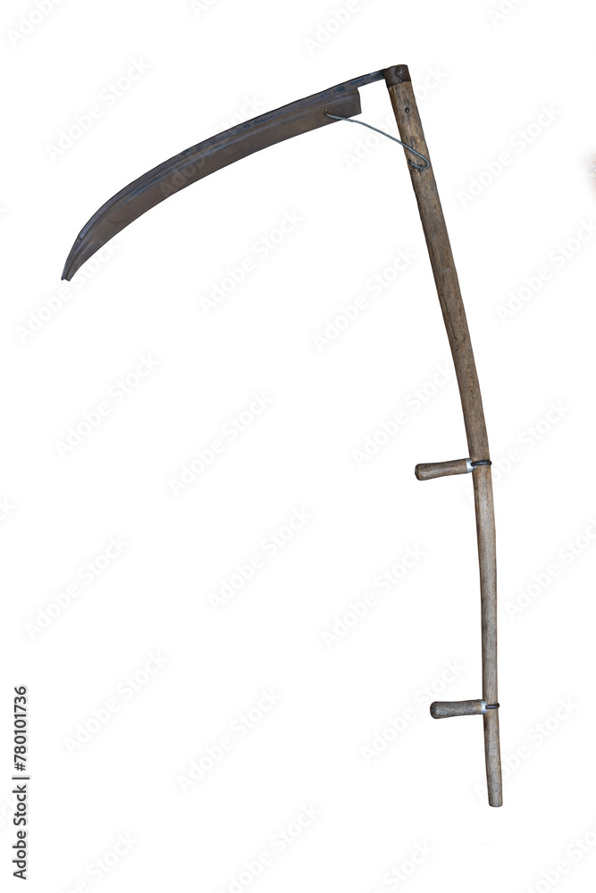 Fototapeta Long-blade scythe with wooden handle isolated transparent background