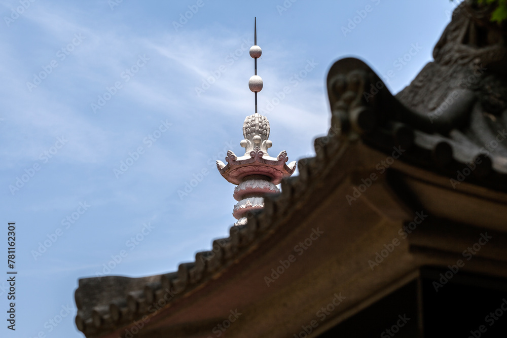 Fototapeta View of the pagoda above the wooden eaves in the Buddhist temple