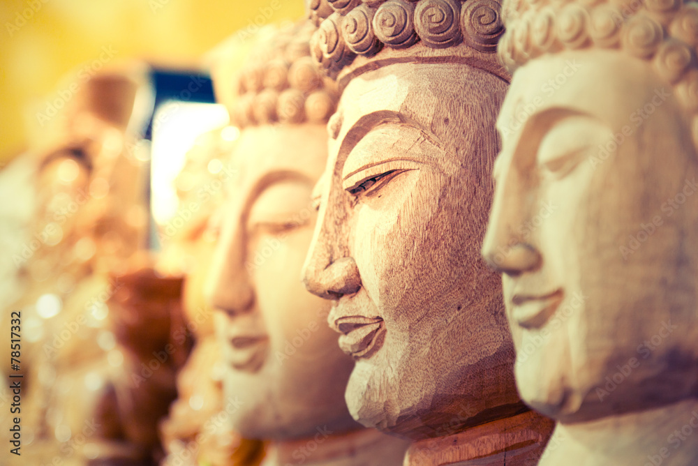 Fototapeta Buddha cut from a tree, in the studio