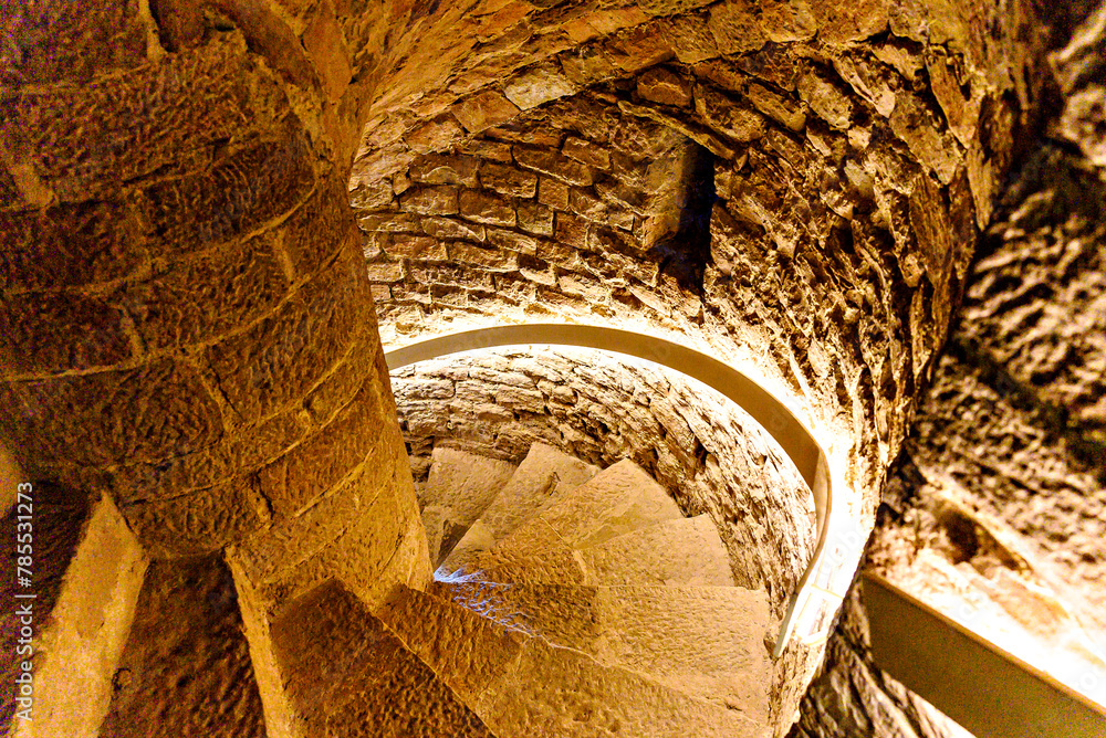 Fototapeta Spiral Roman stairs inside Cardona Castle, Barcelona, Spain