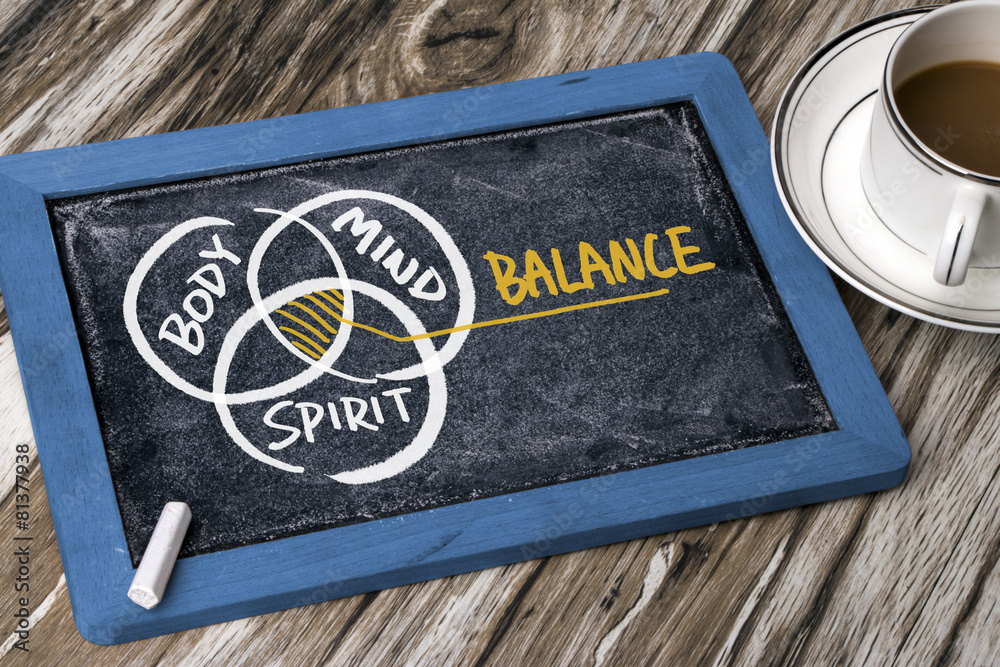 Fototapeta body mind spirit balance hand drawing on blackboard