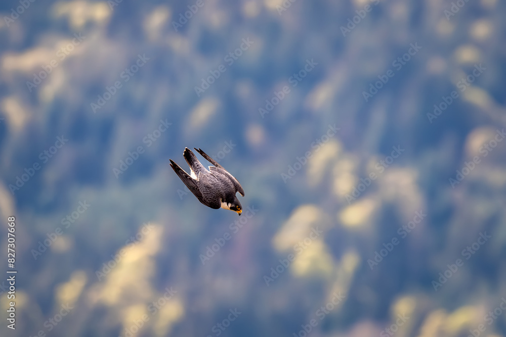 Fototapeta Peregrine falcon in mid-air dive at Mount Maxwell, Salt Spring Island, BC Canada