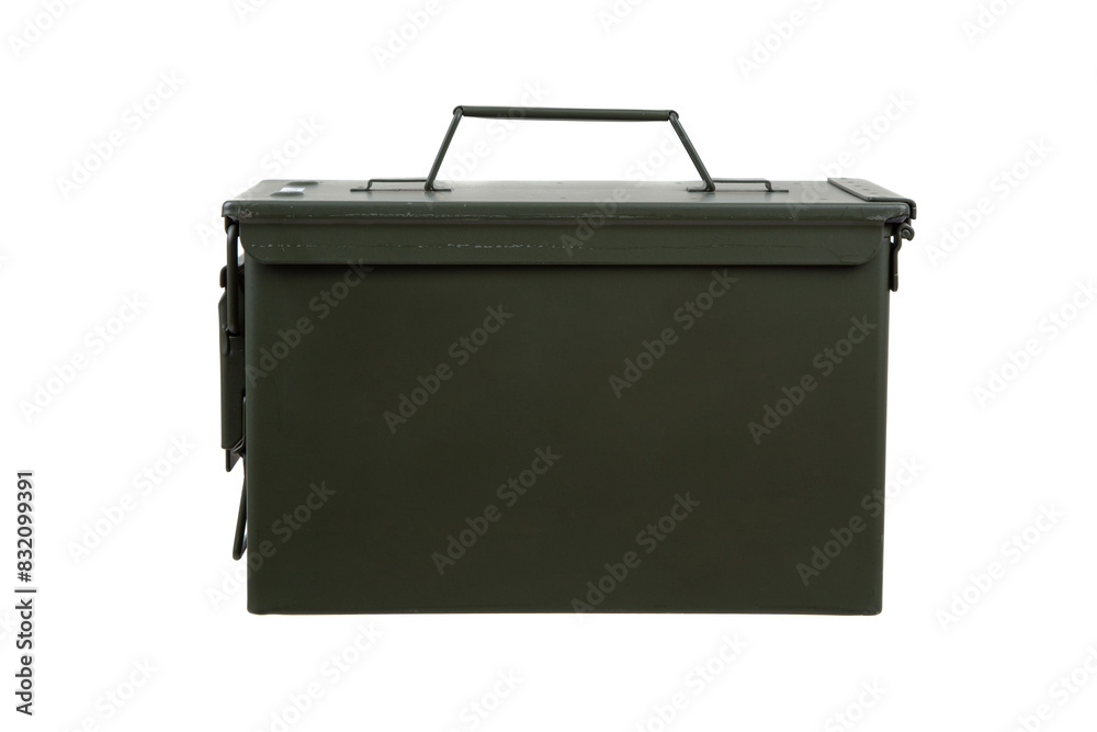 Fototapeta US army green metal ammo can for gun cartridges isolated on white back