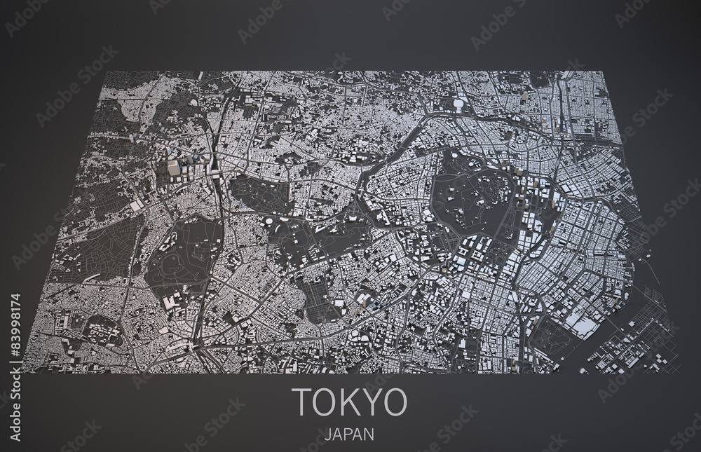 Fototapeta Mappa Tokyo, vista satellitare, Giappone, 3d