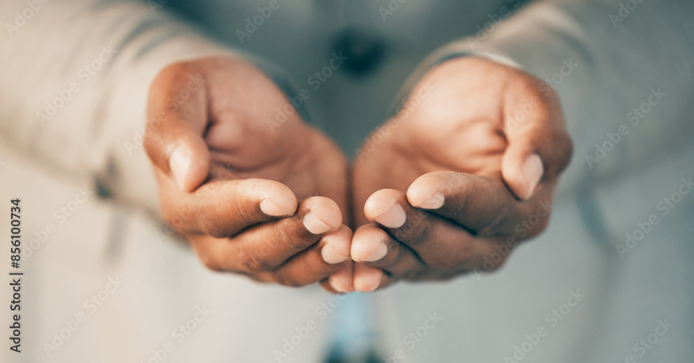 Fototapeta Hands, charity and palms of person for support, giving and hope for growth