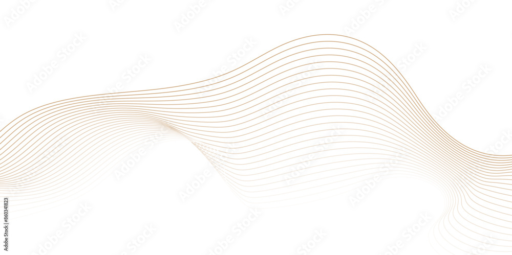 Fototapeta Abstract vector wavy lines flowing smooth curve gold gradient color on transparent background in concept of luxury, technology, science, music, modern