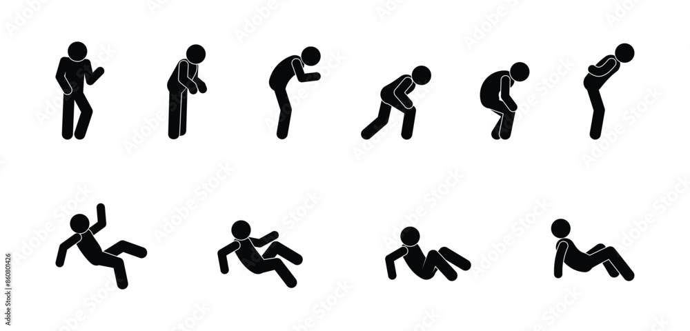 Fototapeta human silhouettes, stickman on a white isolated background, a man bent over and