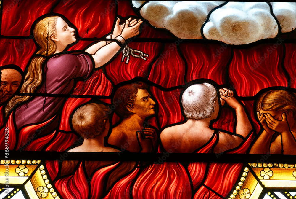 Fototapeta Souls in purgatory fire waiting for the salvation of their souls
