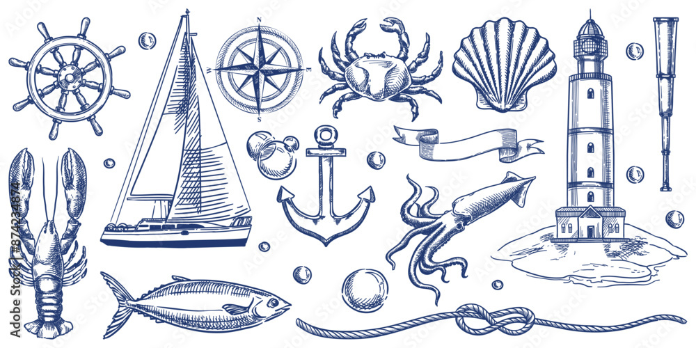 Fototapeta Nautical vintage icons set