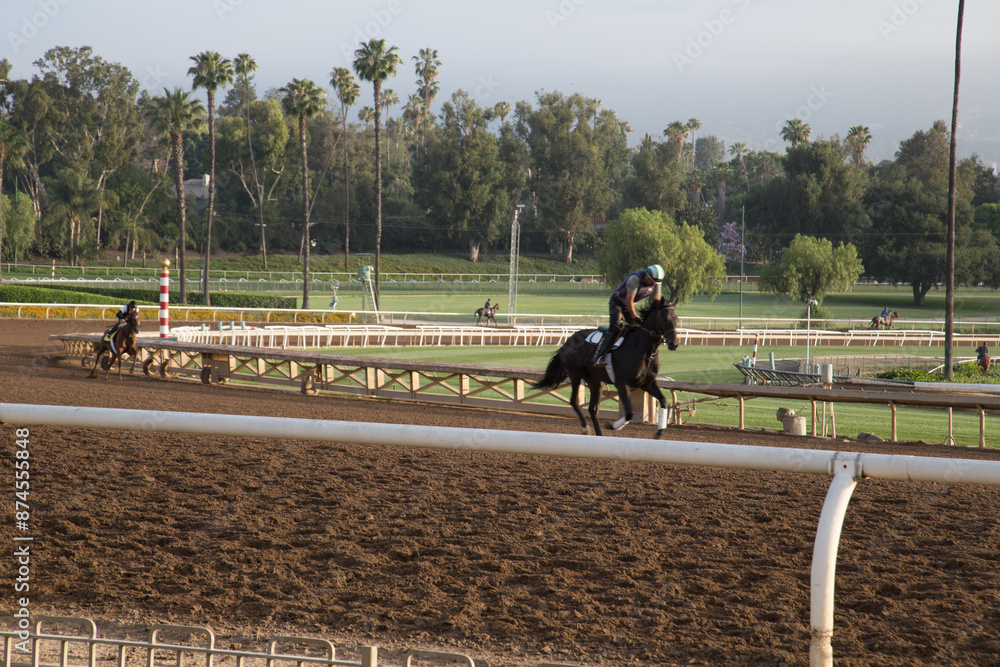 Fototapeta Horses Training at Santa Anita Racetrack