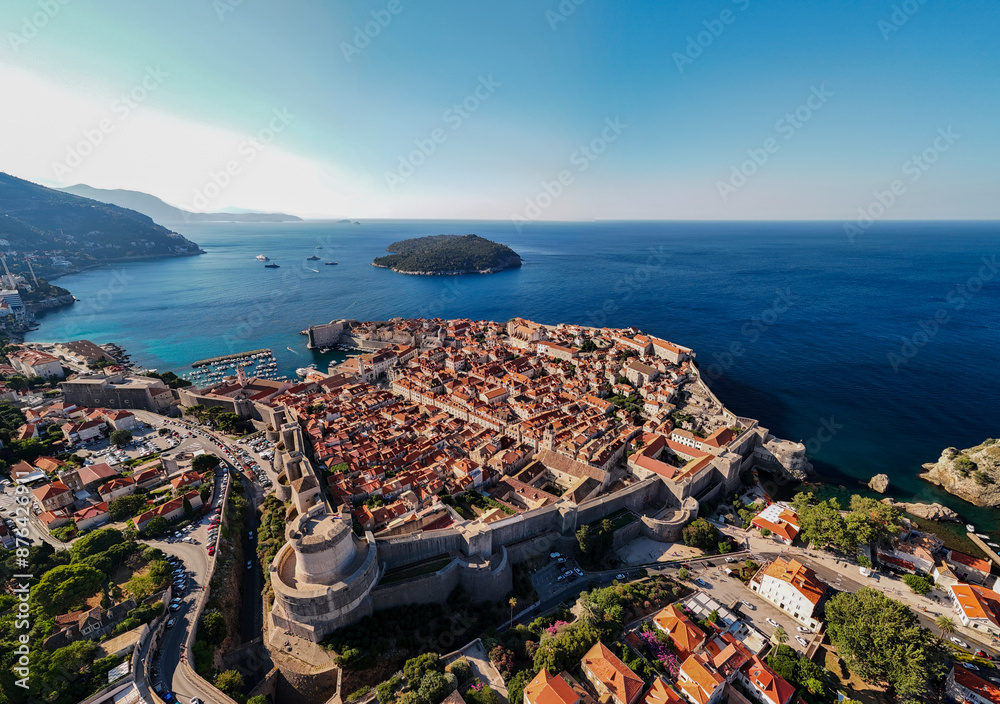 Fototapeta Aerial drone view of Dubrovnik old town city walls
