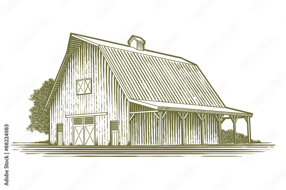 Fototapeta Woodcut Barn Icon