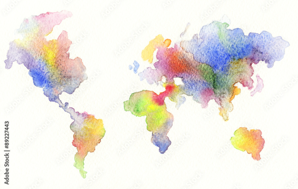Fototapeta World map , watercolor illustration