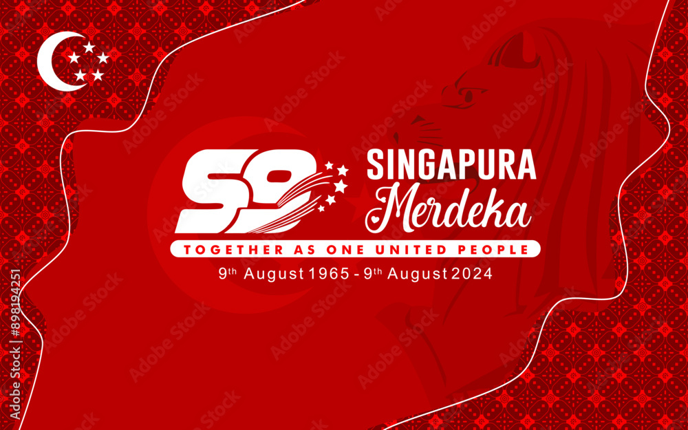 Fototapeta Exclusive Template of 59th Singapore National Day with Logo, Quotes and Batik Pattern