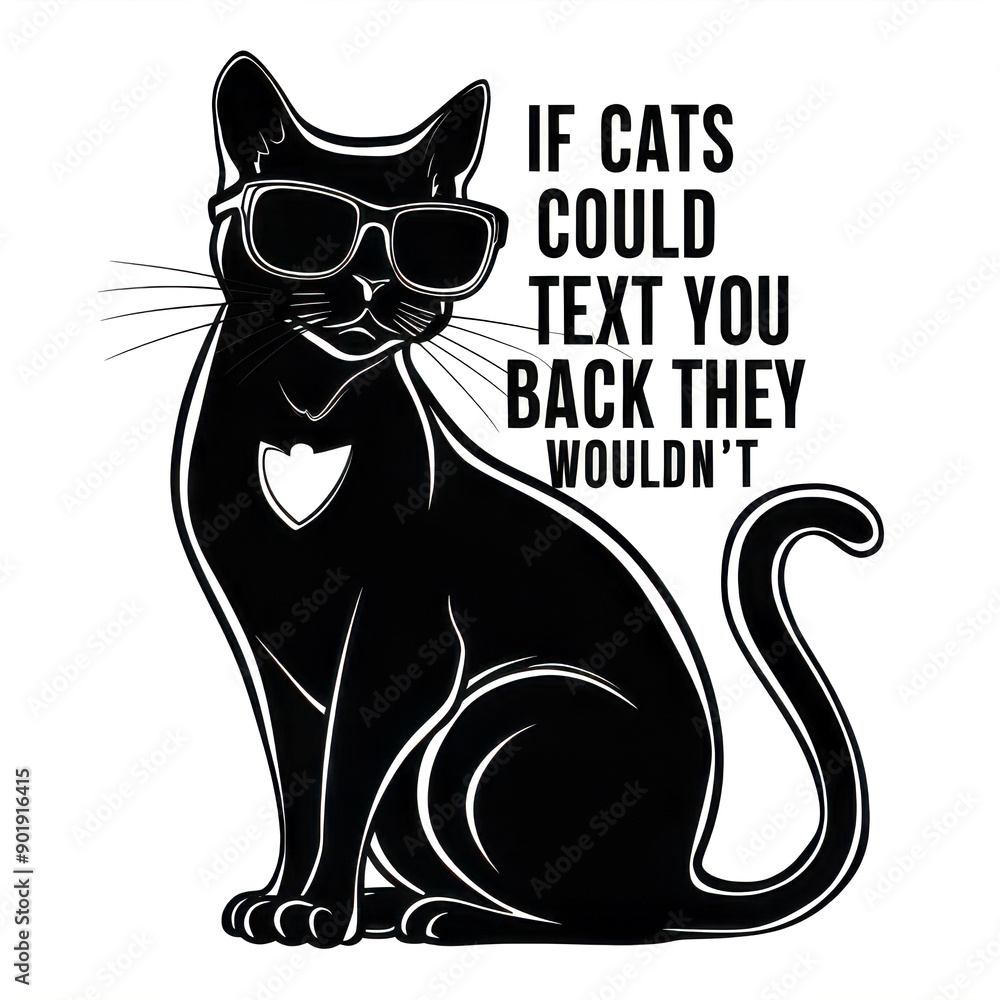 Fototapeta Stylish Black Cat with Sunglasses and Heart Patch and Humorous Text