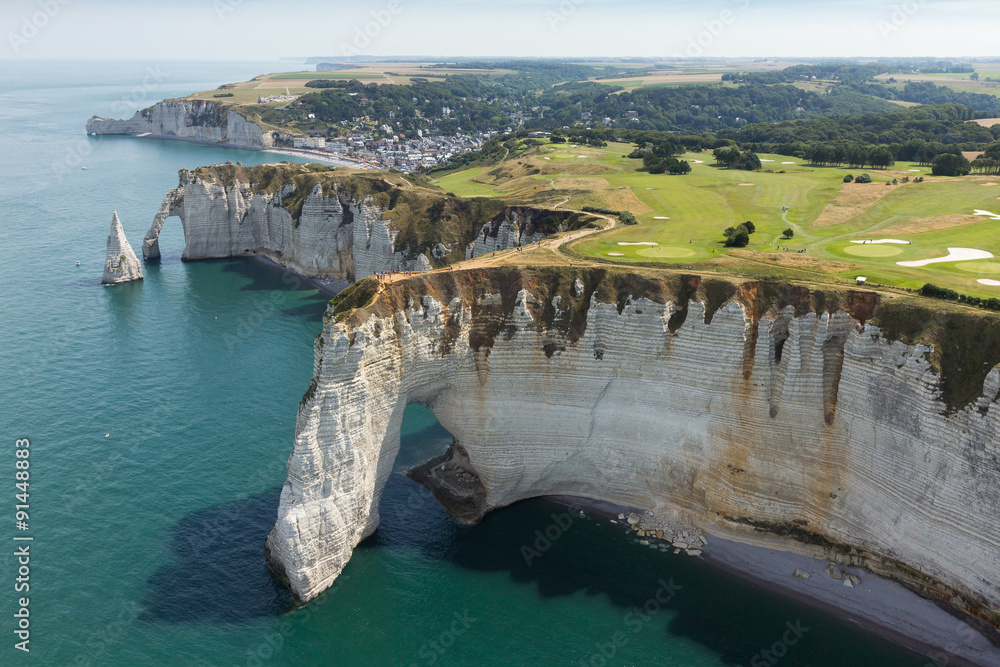Fototapeta Vue aérienne falaise d'Aval d'Etretat Seine maritime