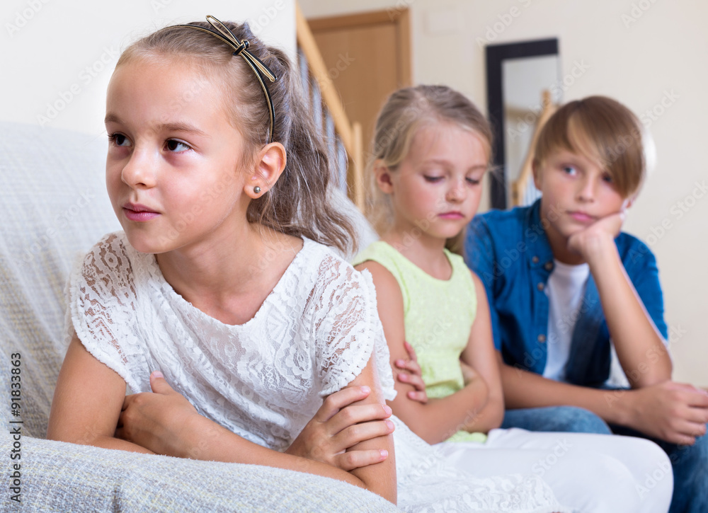 Fototapeta child sitting aside of boy and girl