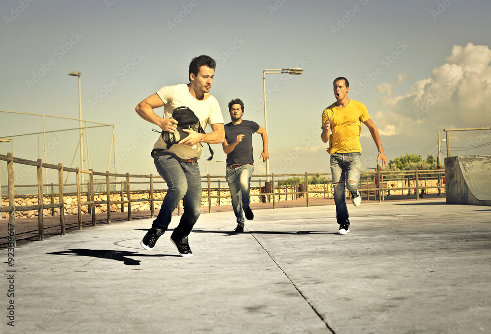 Fototapeta Thief stealing a rucksack