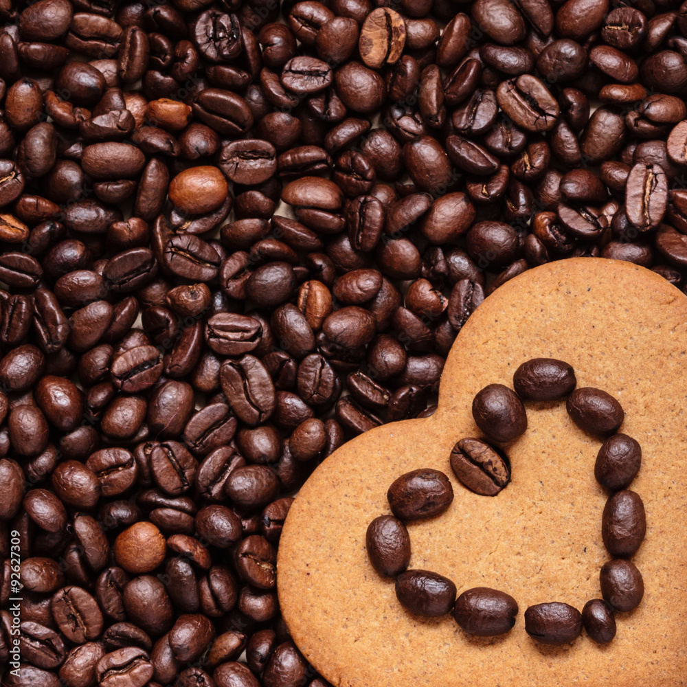 Fototapeta Ve tvaru srdce cookie na kávových zrn pozadí