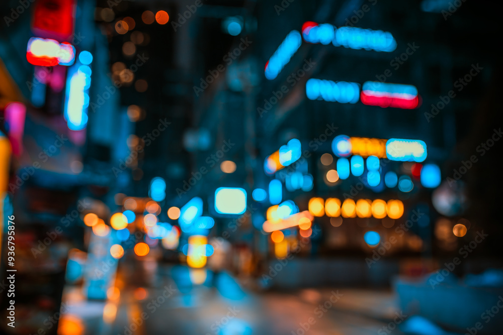 Fototapeta City street in Seoul at night, blurred abstract background