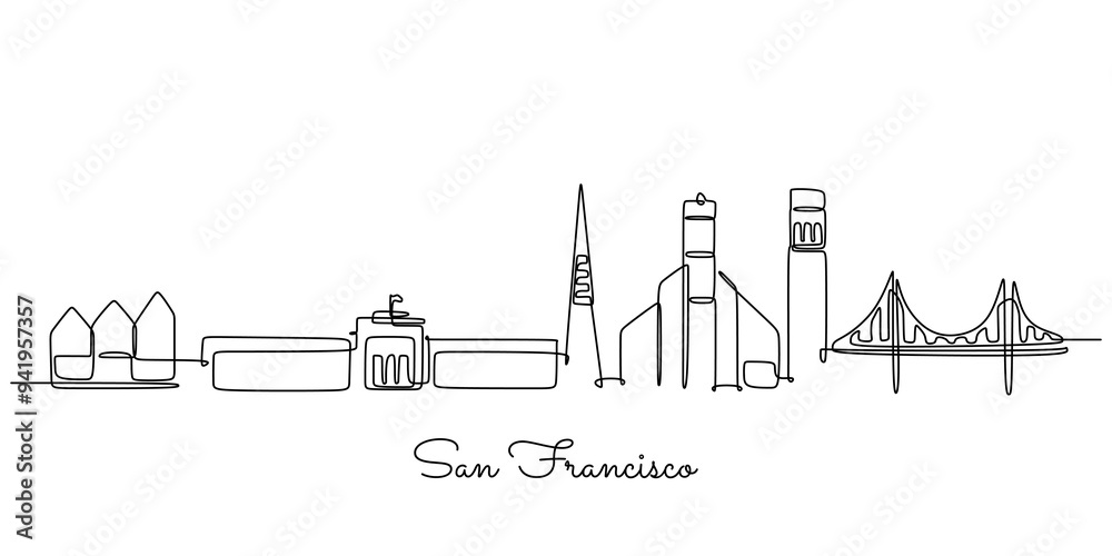 Fototapeta One continuous line drawing San Francisco city skyline, United States of America beautiful landmark