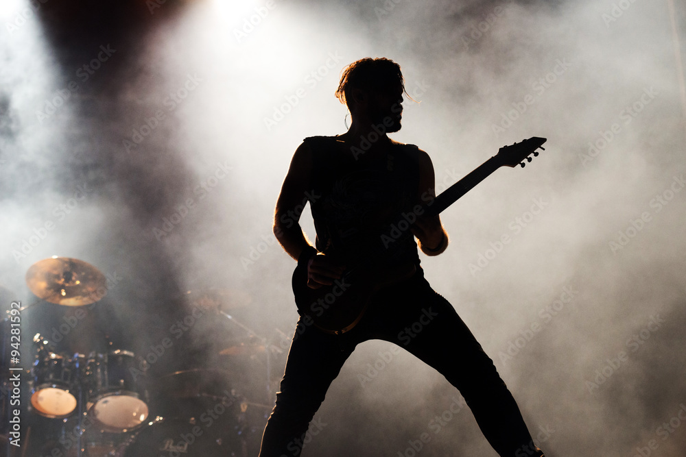 Fototapeta silhouette of a a guitarist on stage