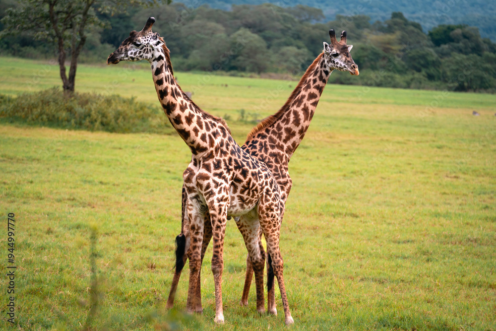 Fototapeta Two Giraffes Looking Opposite Directions, Arusha National Park, Tanzania
