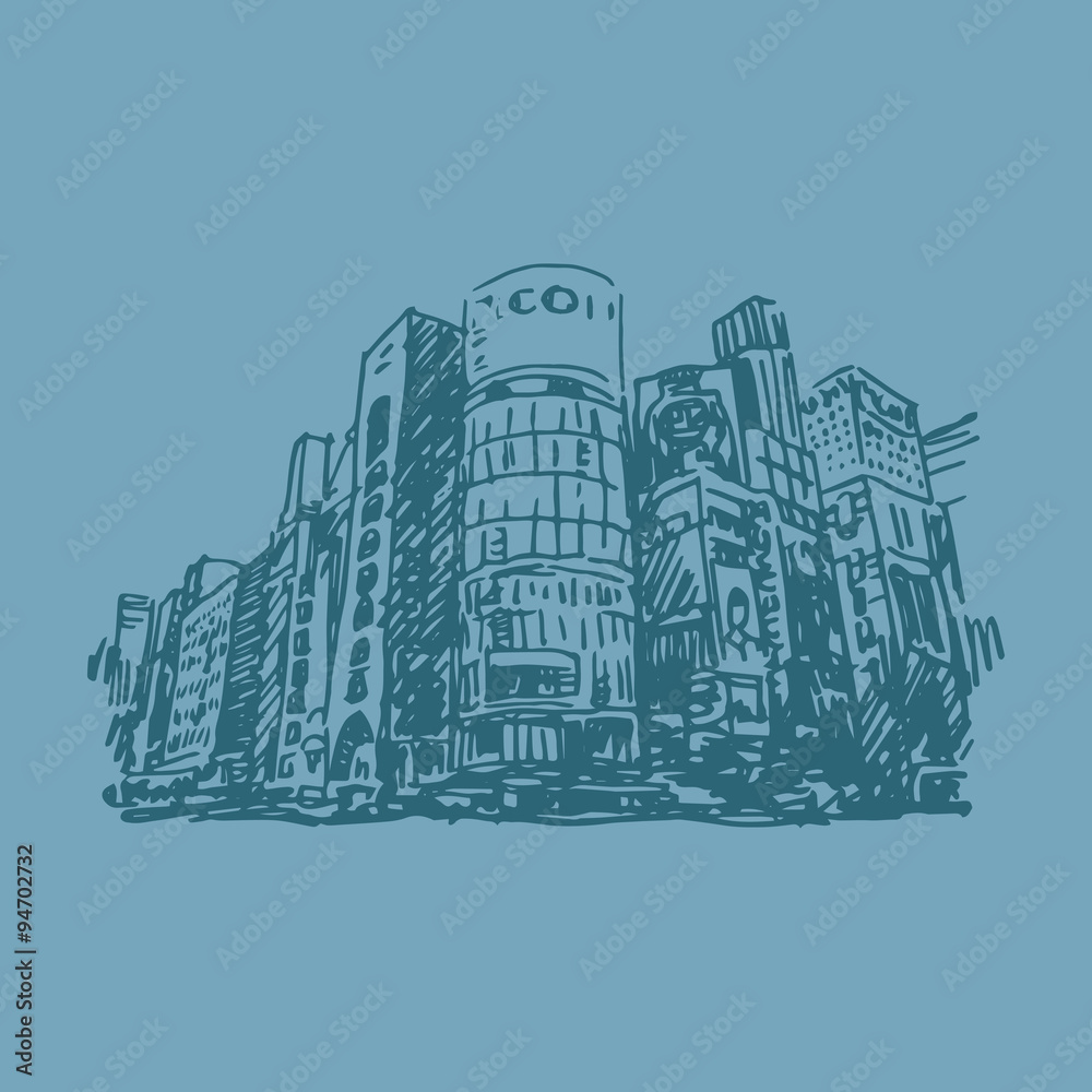 Fototapeta Tokyo, Ginza. Vector quick sketch.