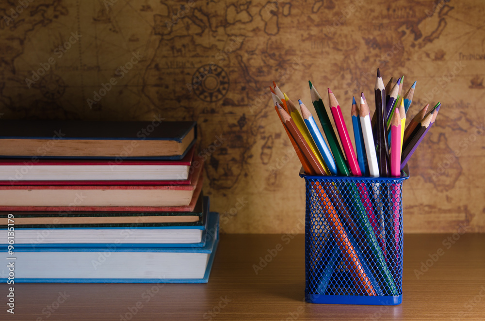 Fototapeta Barva penál na dřevěném stole