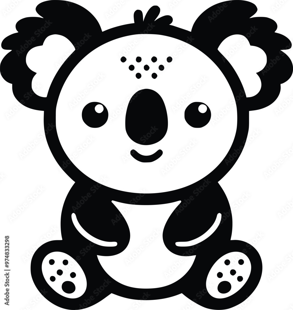 Cute Black and White Illustration of a Soft Koala