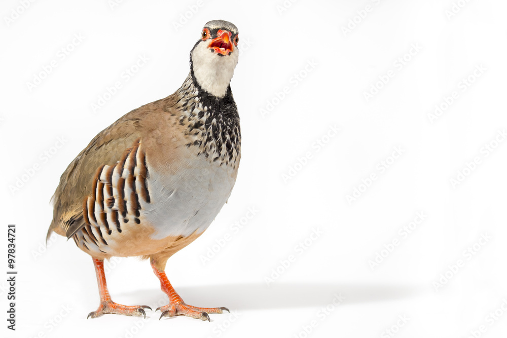 Fototapeta Wildlife studio portrait: Red-legged partridge looking to camera