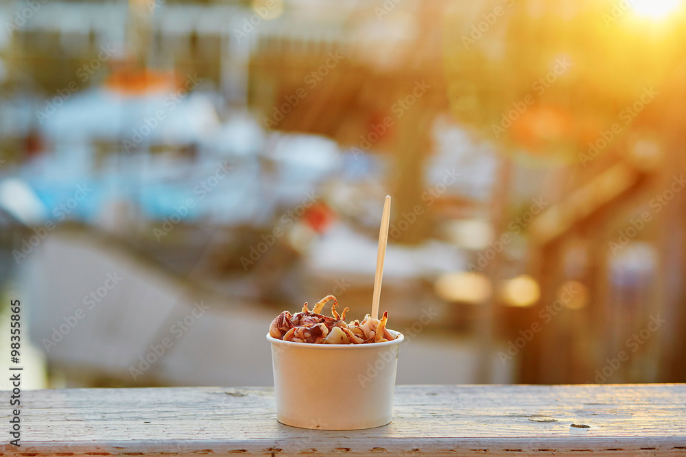 Fototapeta Traditional street food in San Francisco - shrimps and octopus