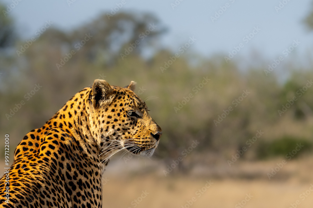 Fototapeta African leopard, Panthera leopard, Panthera pardus pardus, detail of head, Morem