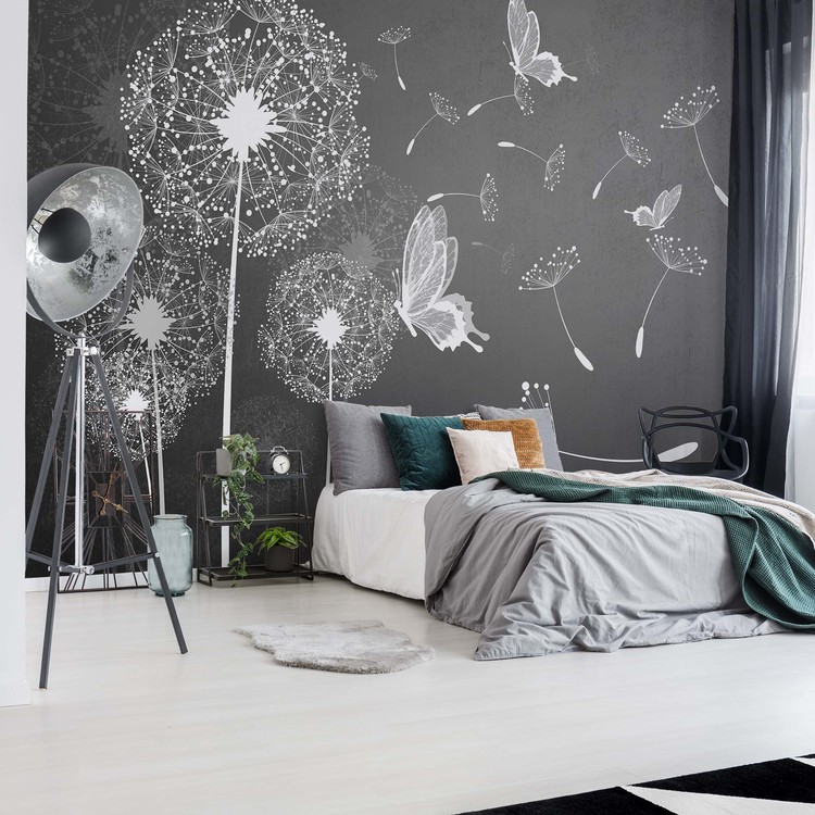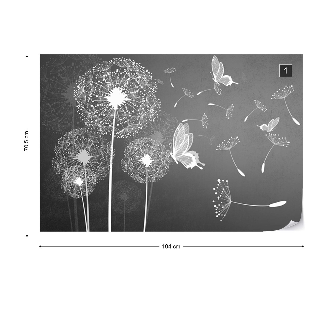 Fototapeta Modern Dandelions And Butterflies Grey And White