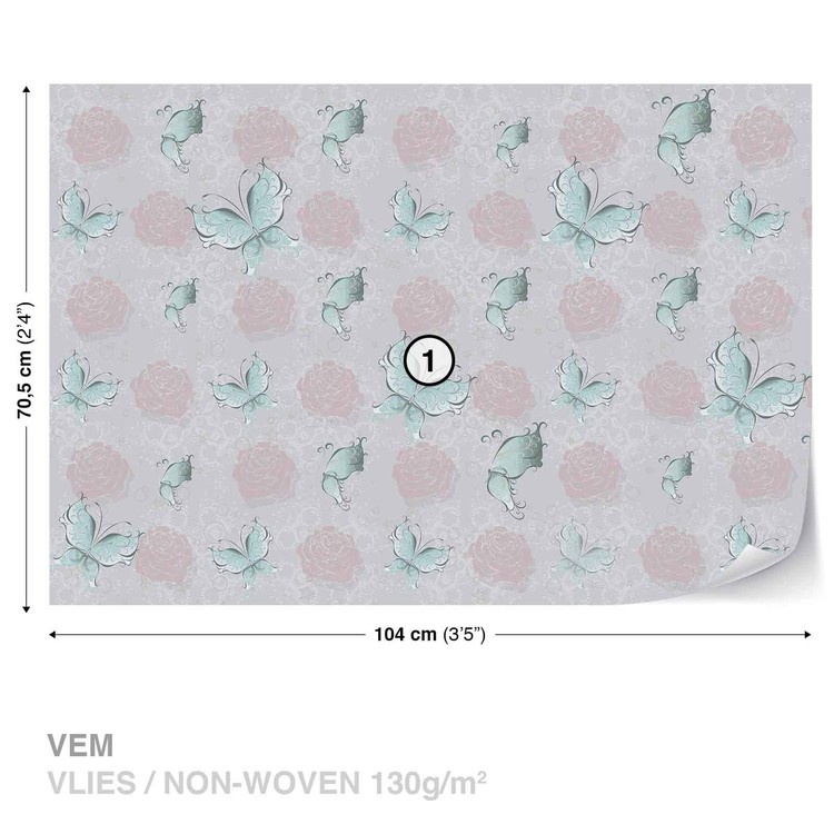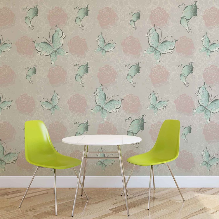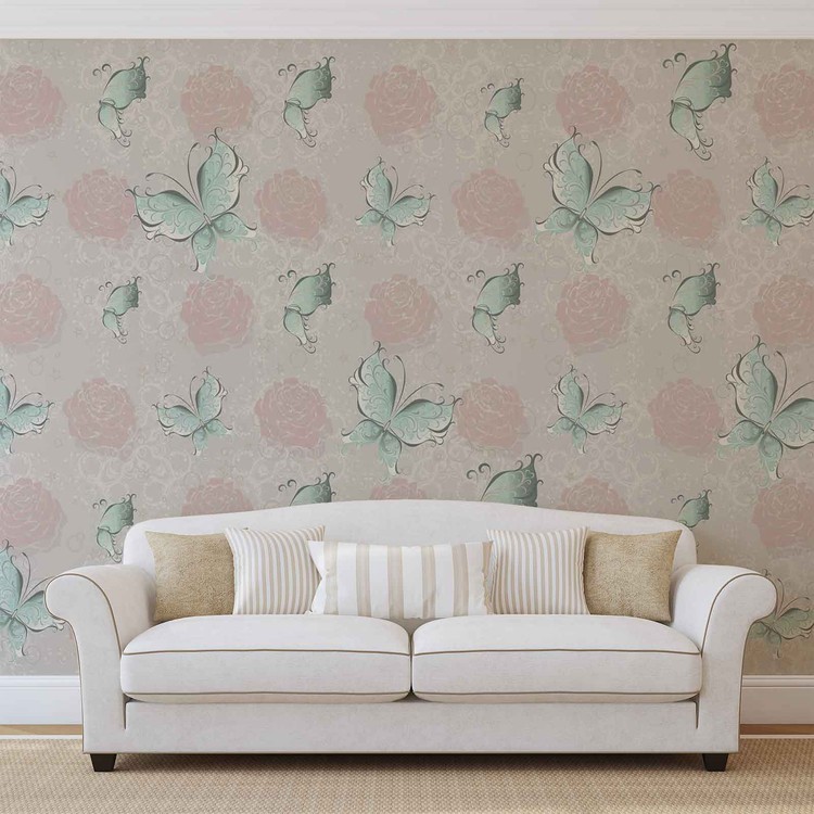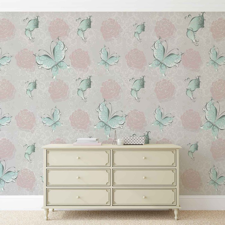 Fototapeta Vintage vzor, motýli a růže