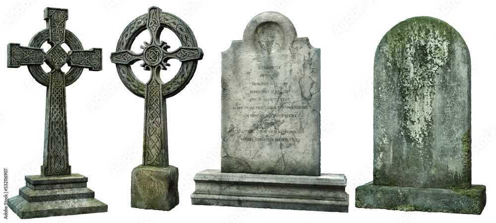 Obraz na plátně Four old headstones 3D illustration