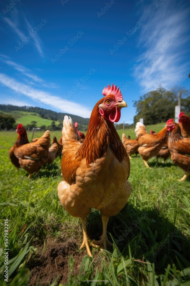 Fotografie Free-range chickens on an organic farm. Generative AI