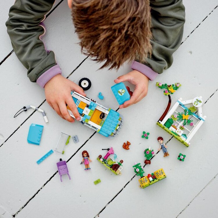 Stavebnice Auto sázečů stromů (41707) od LEGO® Friends je skvělým způsobem, jak podpořit zájem dětí o přírodu a učit je o pěstování rostlin. S touto sadou se kluci i holky od 6 let mohou hravou formou dozvědět něco o péči o živou zelen. Sada obsahuje nejen 2 minipanenky, ale také stromovou školku, funkční pick-up a spoustu zahradnických doplňků, což dětem umožňuje vytvářet svět plný zeleně a přírodní krásy. Navíc figurky divokých zvířat, které dětem dělají společnost, přinášejí do této scény ještě větší dobrodružství. Jedním z nejzajímavějších prvků této sady je funkční pick-up, který je upraven na elektrický pohon. Děti se mohou dozvědět více o udržitelnosti a péči o životní prostředí, když budou zkoumat tento moderní způsob dopravy. Stavebnice Auto sázečů stromů podporuje rozvoj kreativního hraní díky různým funkcím a možnostem úprav. Kloubové rameno umožňuje zvedání a nakládání stromků na korbu pick-upu, což dětem poskytuje zábavu a zároveň je učí o práci v přírodě. Uvedení malých dětí do městečka Heartlake je skvělý způsob, jak podporovat jejich zájmy a fantazii.
