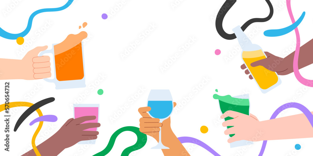 Obraz na plátně Friends party event illustration of friend group drinking alcohol or juice drink together