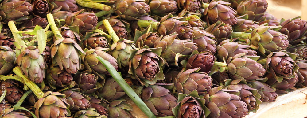 Fotografie frische Artischoken auf dem Wochenmarkt