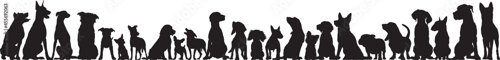 Fotografie Front view of dogs group standing or sitting of different breeds vector silhouet