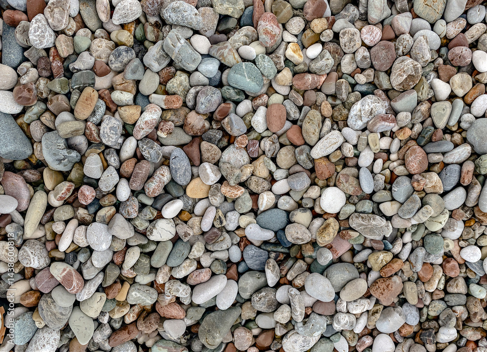 Fotografie Full frame of multicolored smooth pebbles natural stone texture background